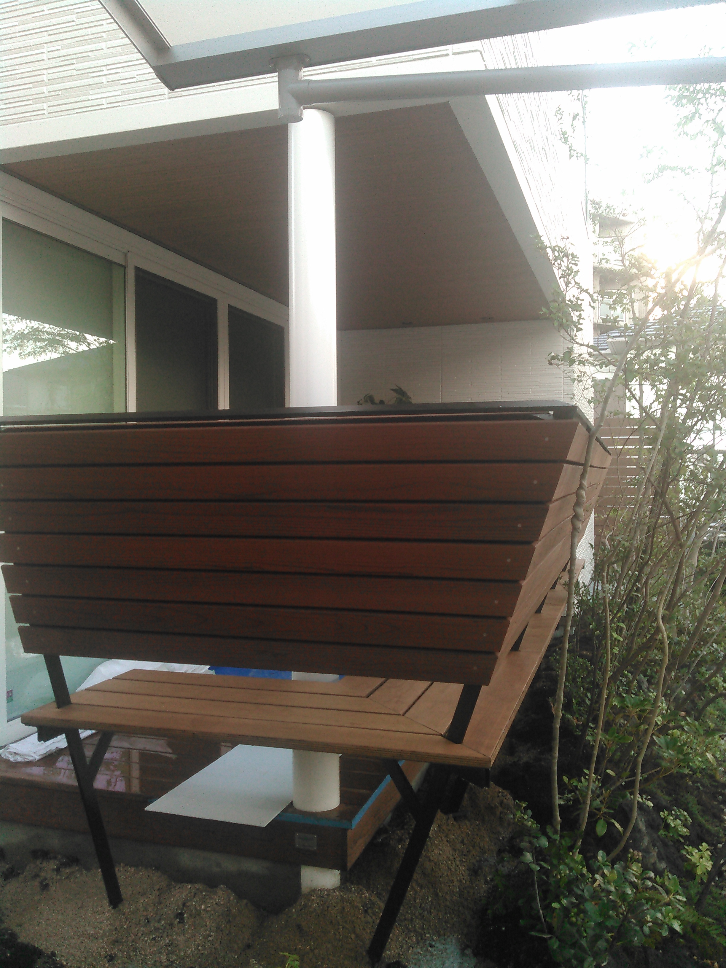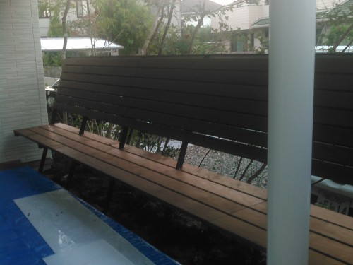 現場にて木貼り、工事終了
