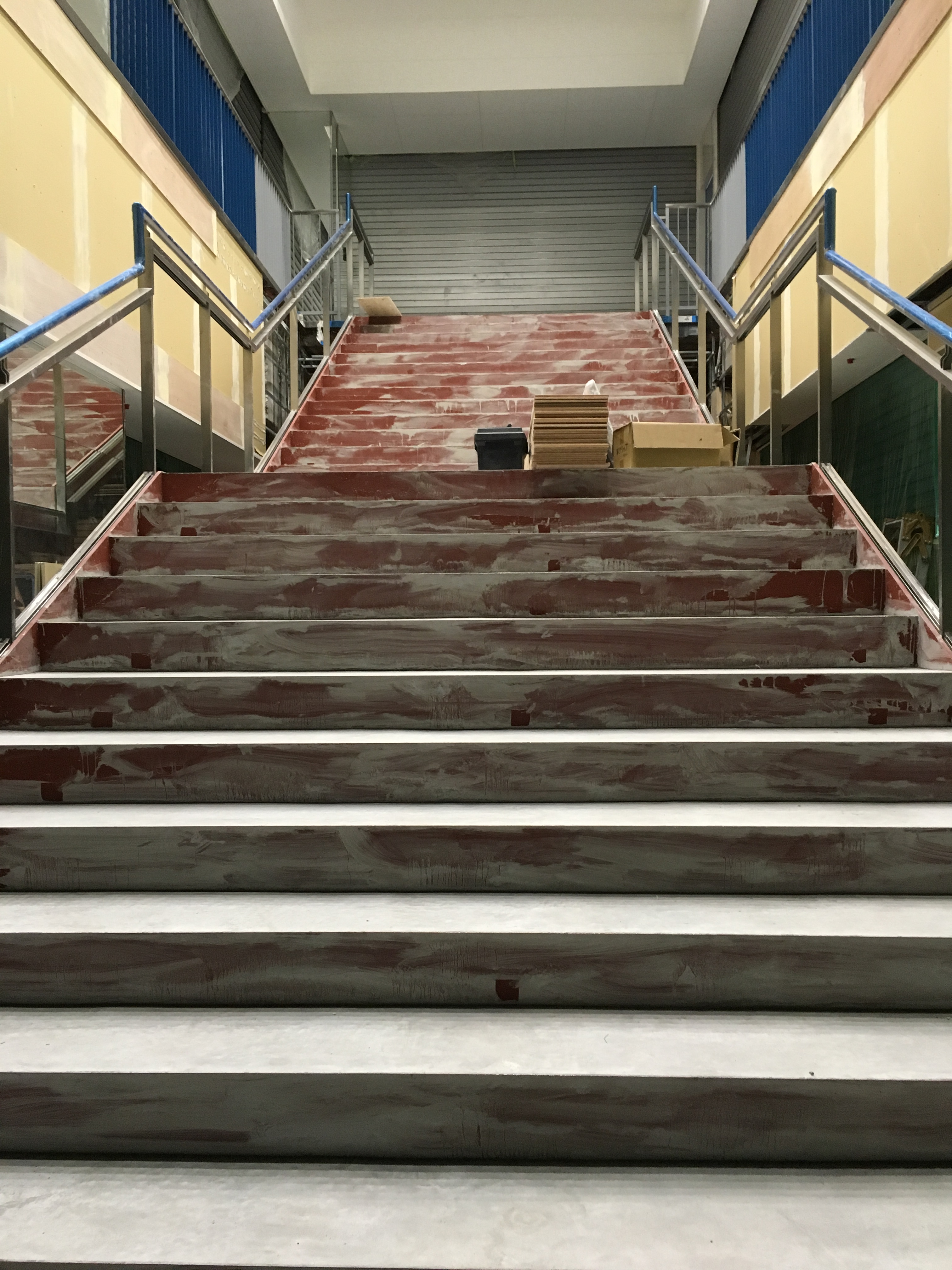 階段にステンレスの手摺りを取り付けて工事完了